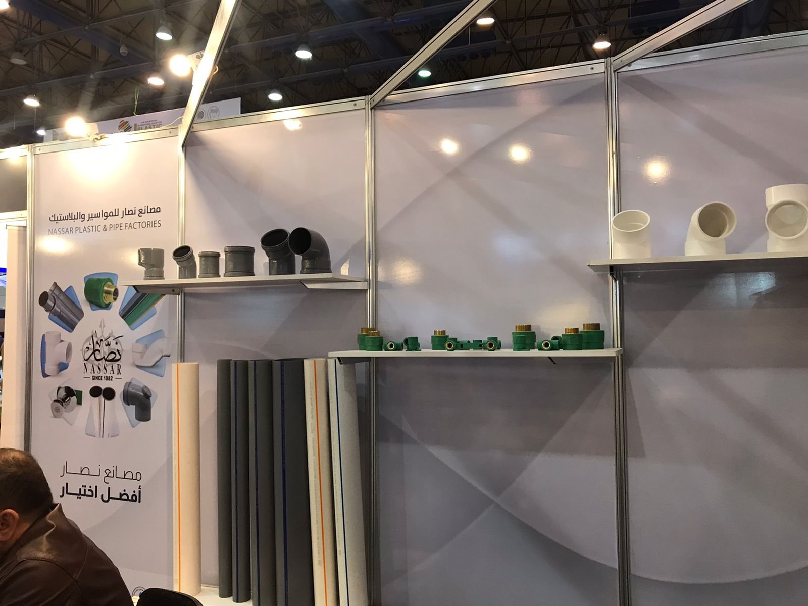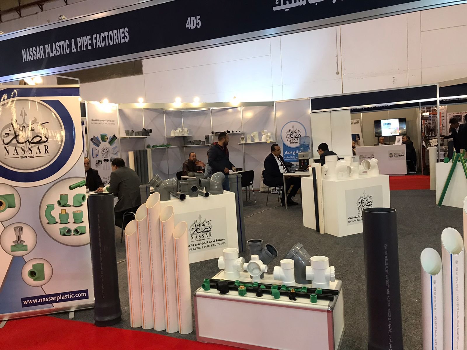 في الصالة ٤ – جناح 4D5، استقبل جناح مصانع نصار الزوار بعرضٍ متميز لأفضل حلول الأنابيب والمواسير البلاستيكية، والتي تلبي احتياجات المشاريع السكنية والتجارية والصناعية. ومن أبرز ما تم عرضه