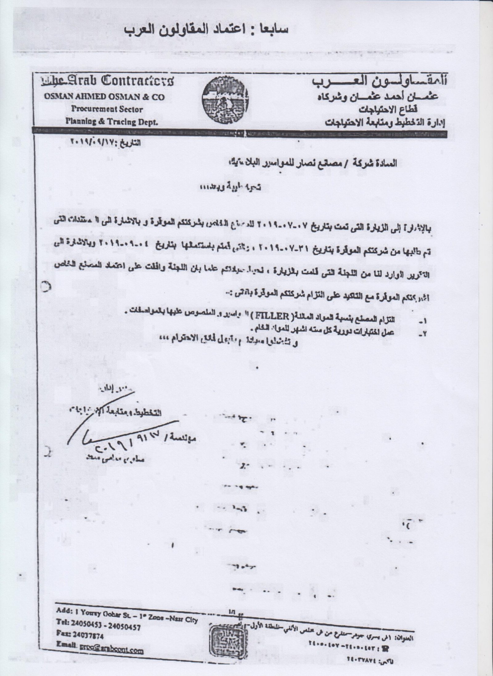 شهادة اعتماد من شركة المقاولون العرب.